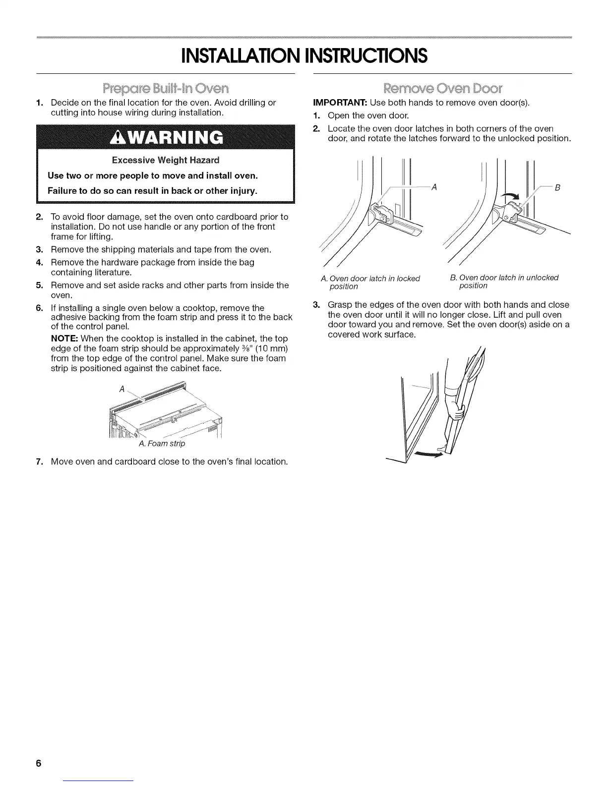 IMPORTANT: Use both hands to remove oven door(s).