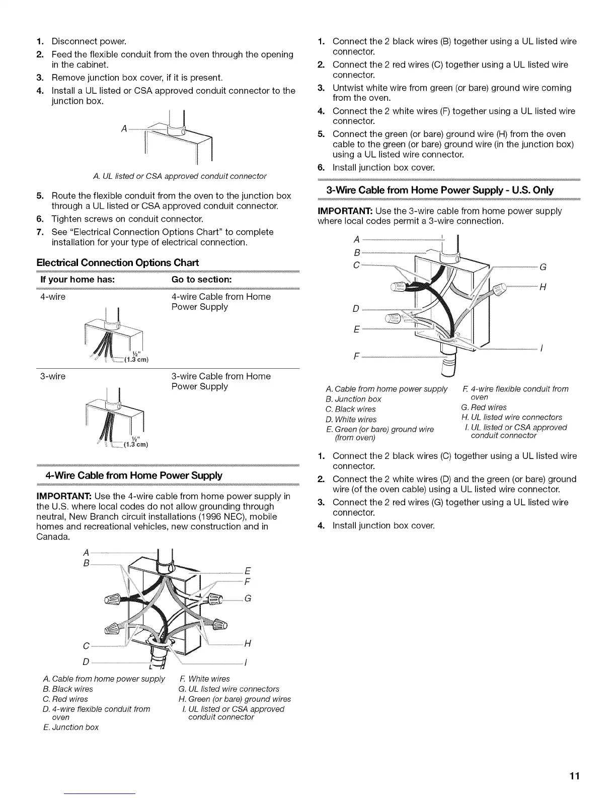 E. Green (or bare) ground wire I. UL listed or CSA approved