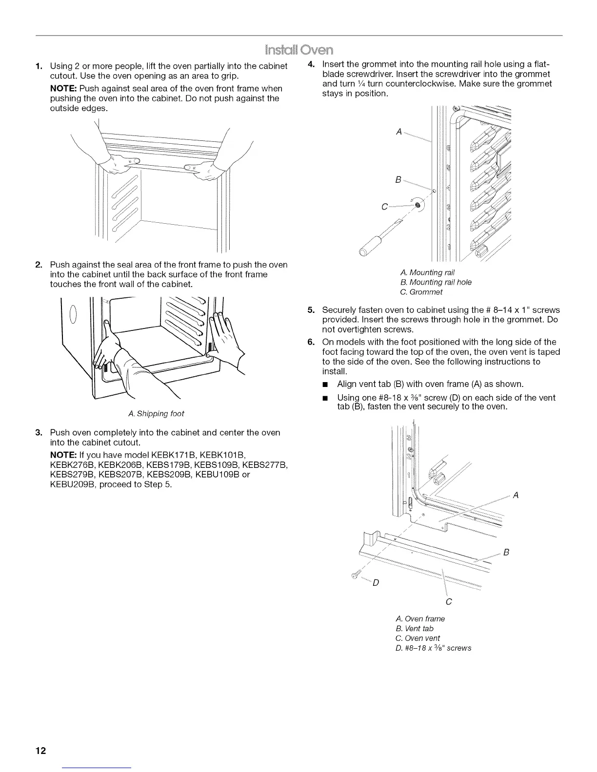 tab (B), fasten the vent securely to the oven.
