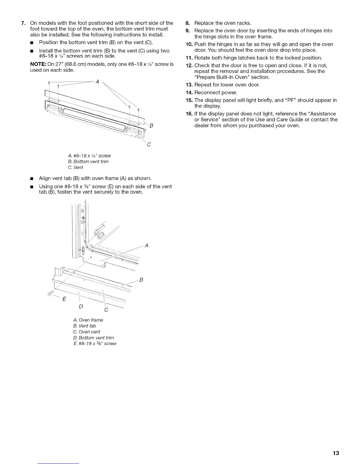 • Using one #8-18 x 3/8"screw (E)on each side of the vent