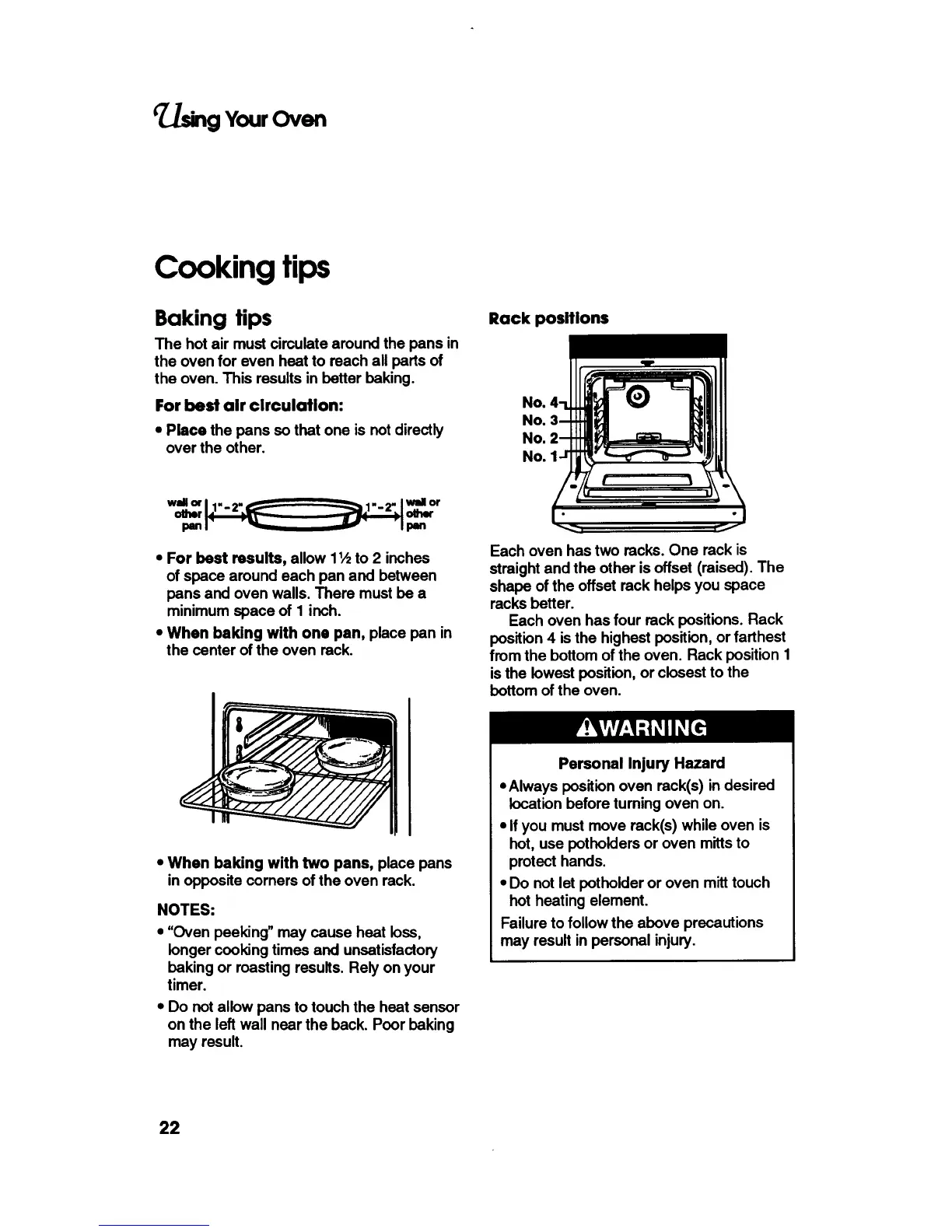 KitchenAid KEBS246Y - Cooking Tips and Techniques; Baking Tips for Best Air Circulation; Oven Rack Positions and Safety
