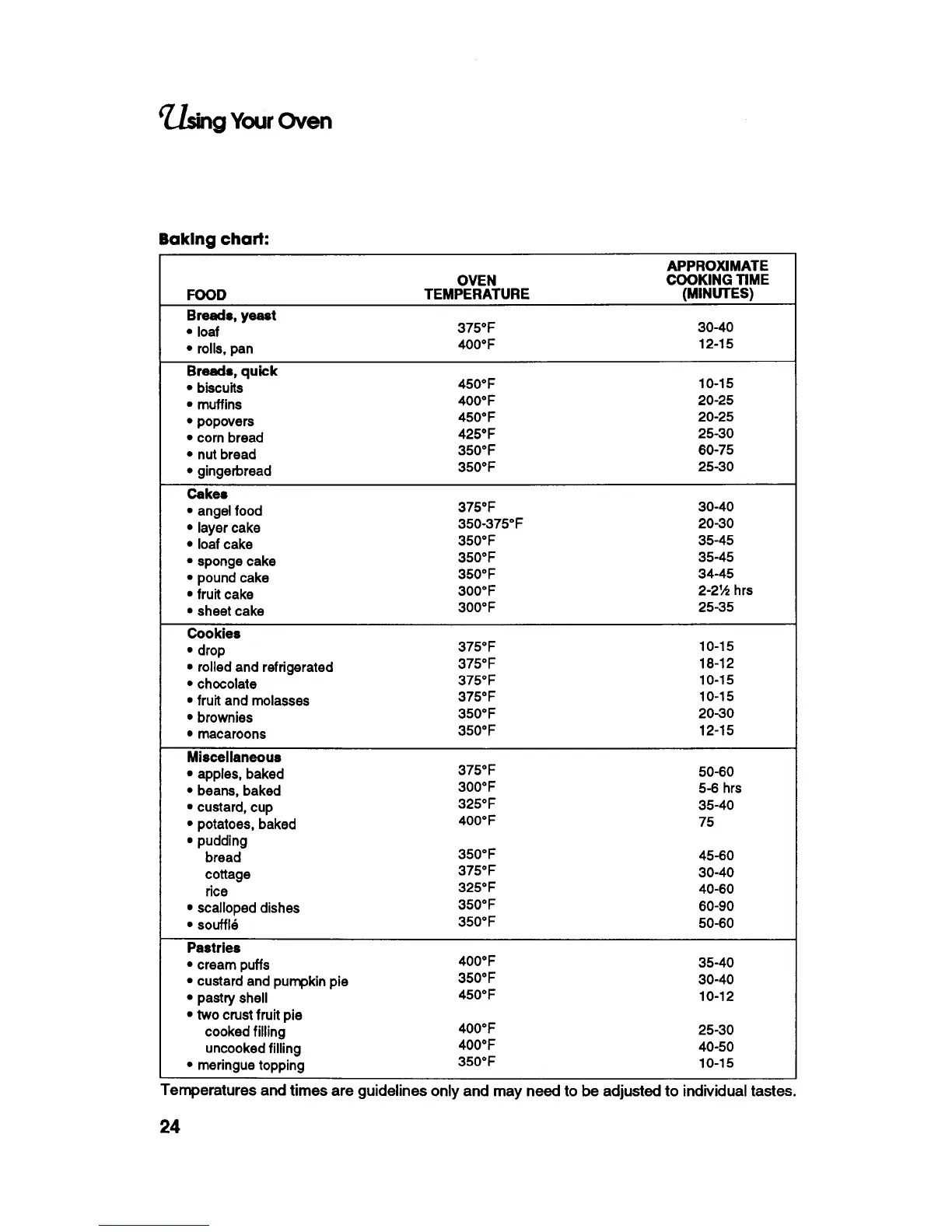 KitchenAid KEBS246Y - Cooking Tips: Baking Chart; Baking Chart: Temperatures and Times