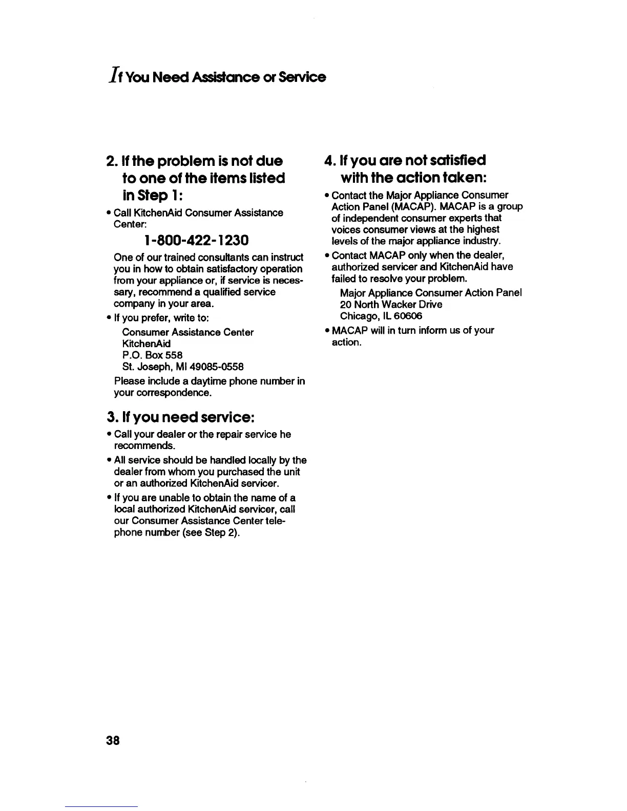 KitchenAid KEBS246Y - Assistance and Service: Contact and Escalation; Consumer Assistance Center Contact; Service and Repair Contact; Consumer Satisfaction Escalation