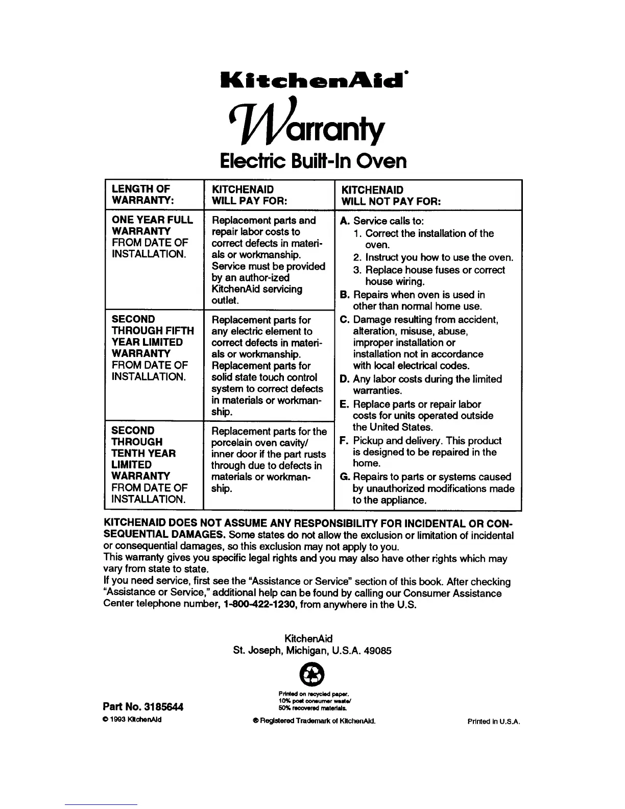 KitchenAid KEBS246Y - KitchenAid Warranty