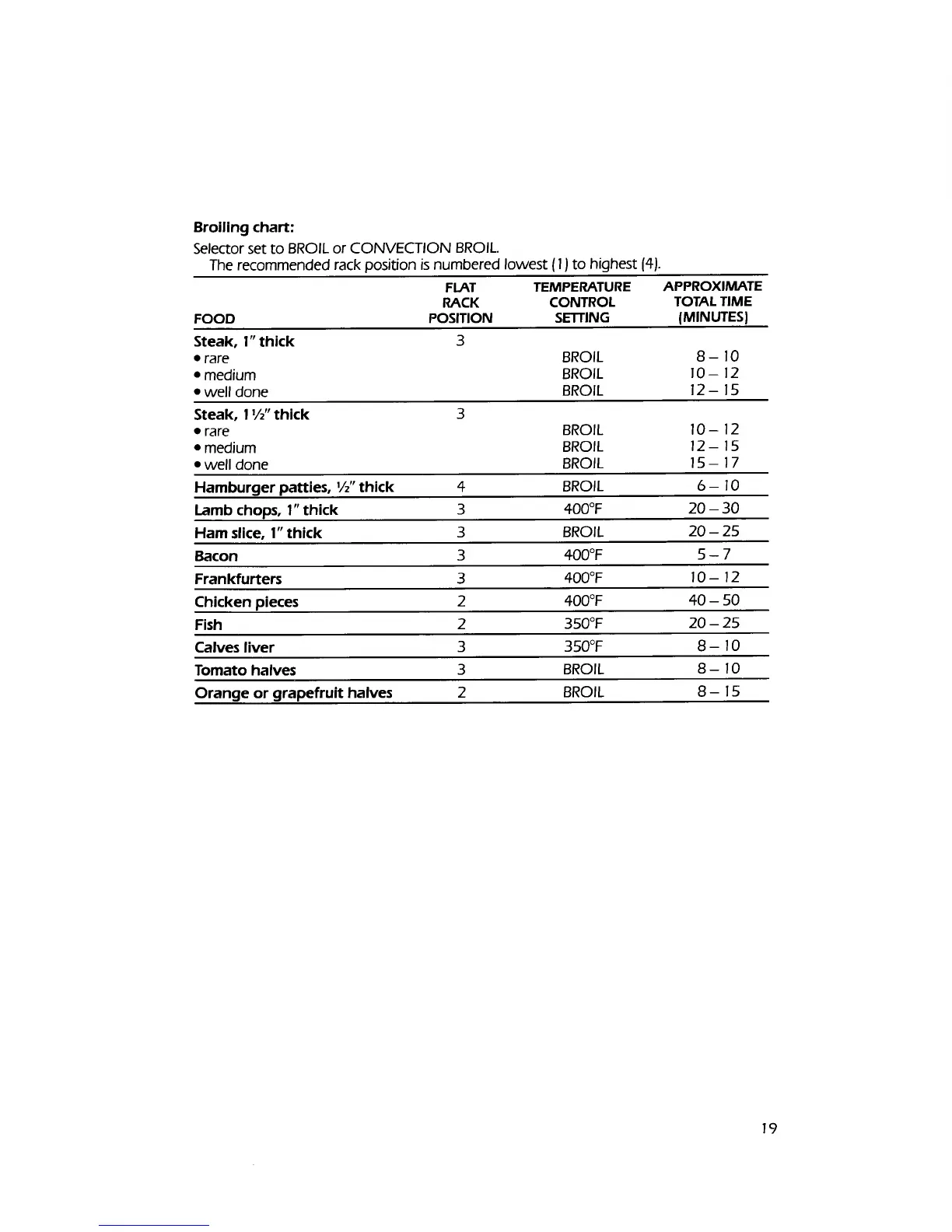 Broiling chart: