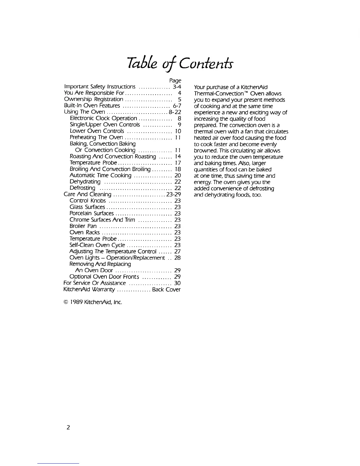 Oven Ughts - Operation/Replacement .. 28