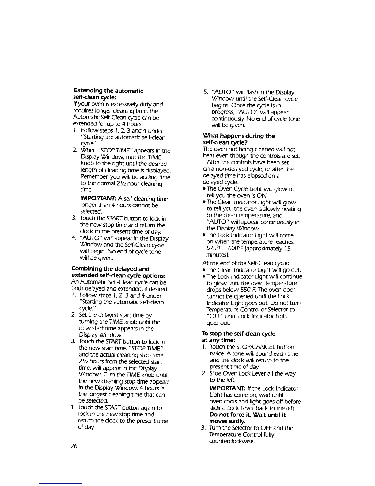 extended self-clean cycle options: