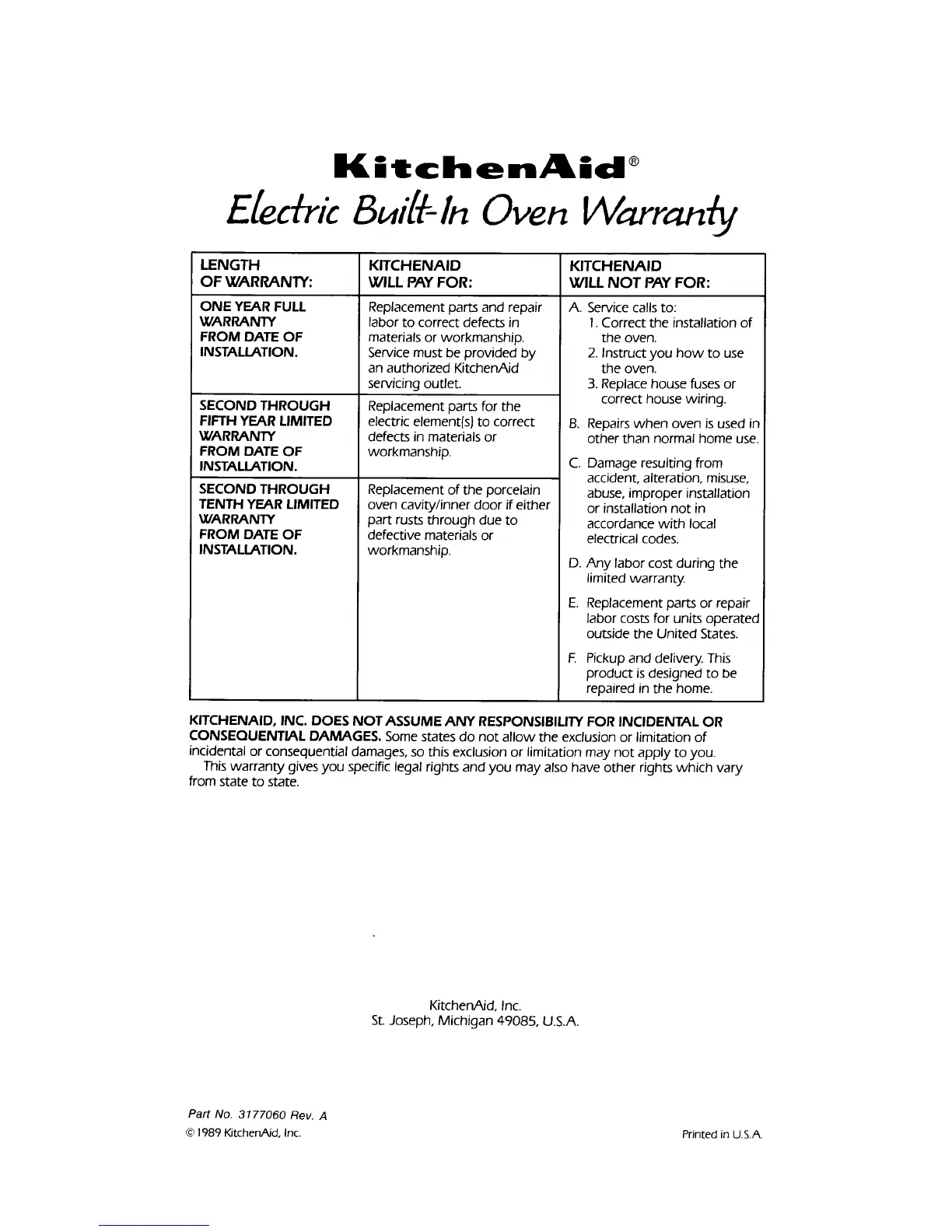 © 1989 KitchenAid, Inc. Printed in U.S.A.