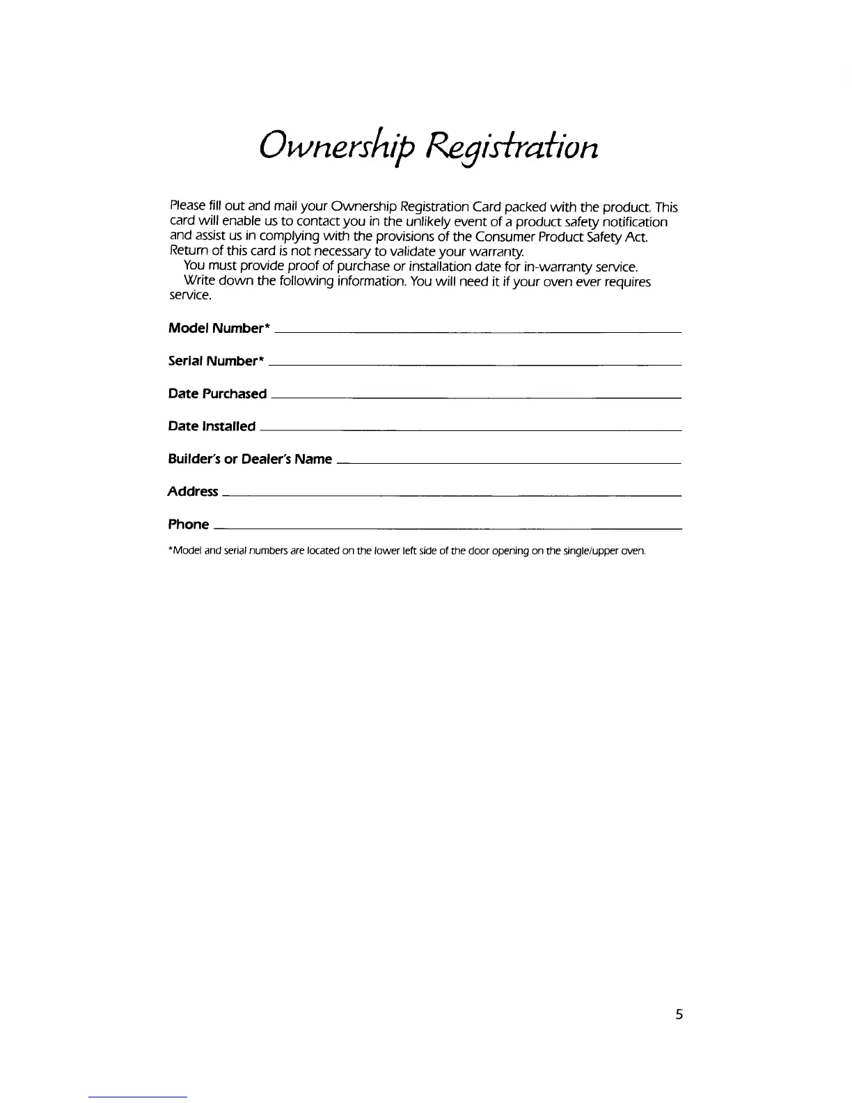 Please fill out and mail your Ownership Registration Card packed with the product. This
