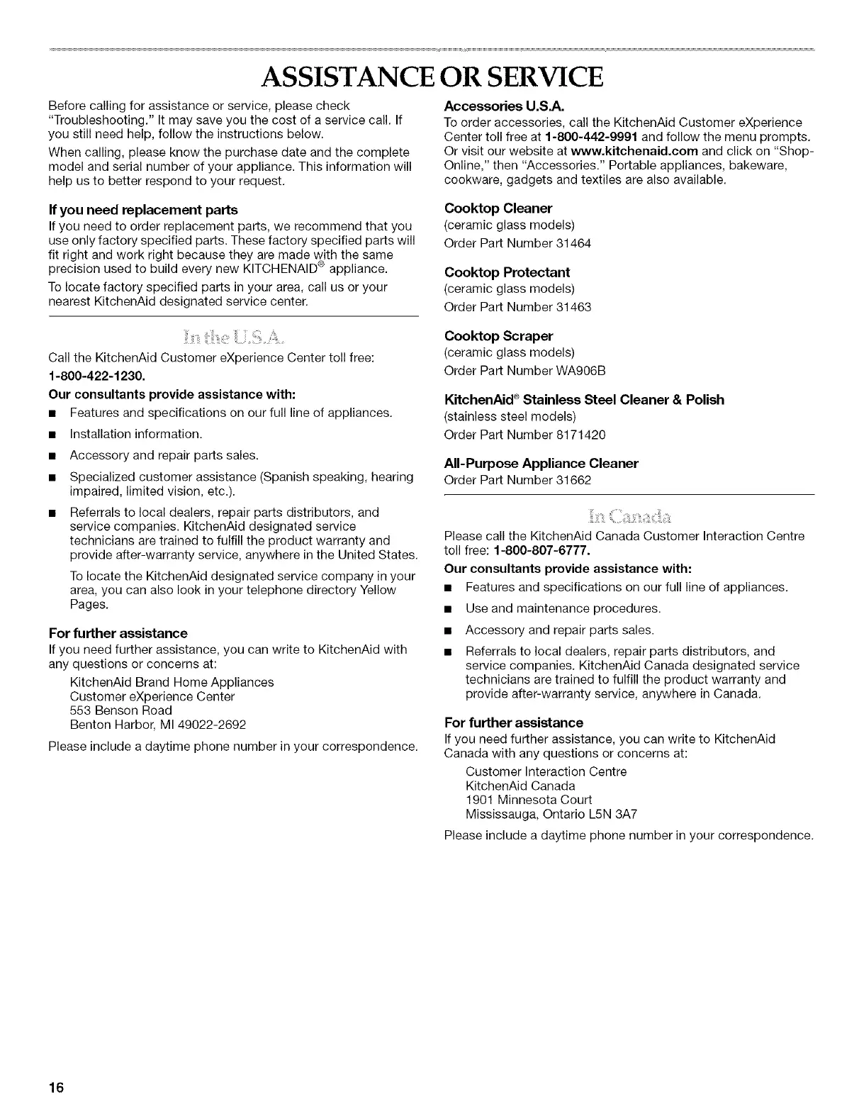Or visit our website at www.kitchenaid.com and click on "Shop-