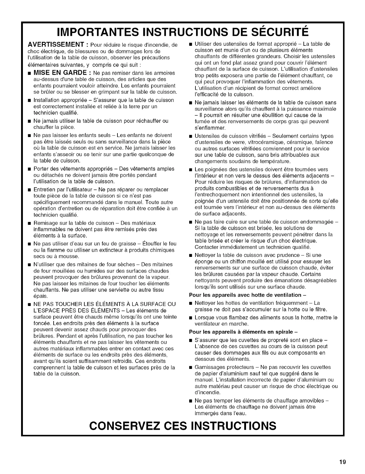 CONSERVEZ CES INSTRUCTIONS