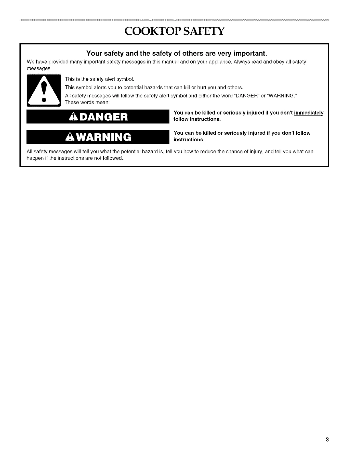 All safety messages will follow the safety alert symbol and either the word "DANGER" or "WARNING."