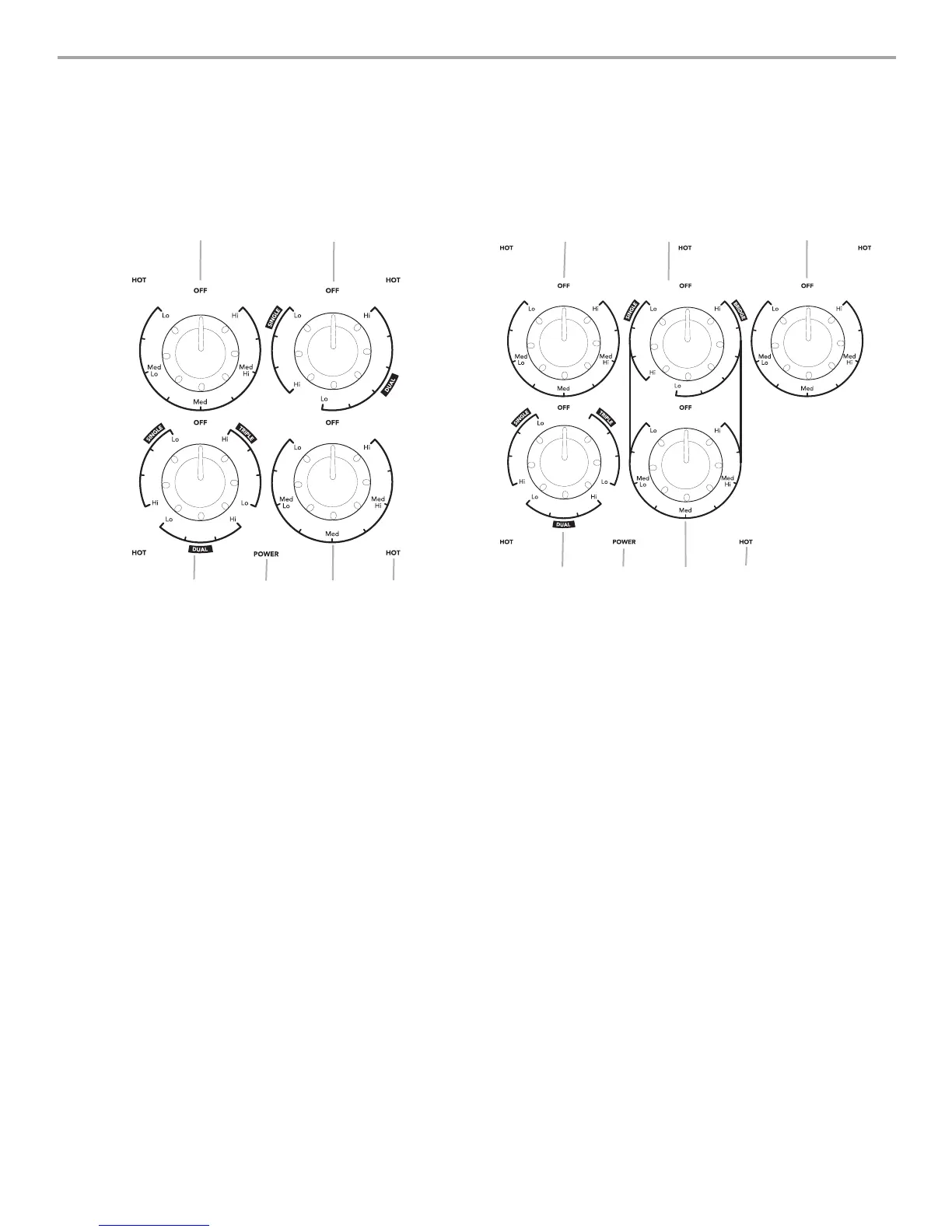 Commandes à bouton standard - Modèle de 30" (76,2 cm) Commandes à bouton standard - Modéle 36" (91,4 cm)