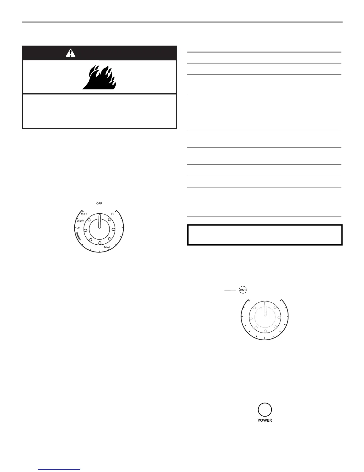 cooktop control knobs. The Hot Surface Indicator Lights will glow