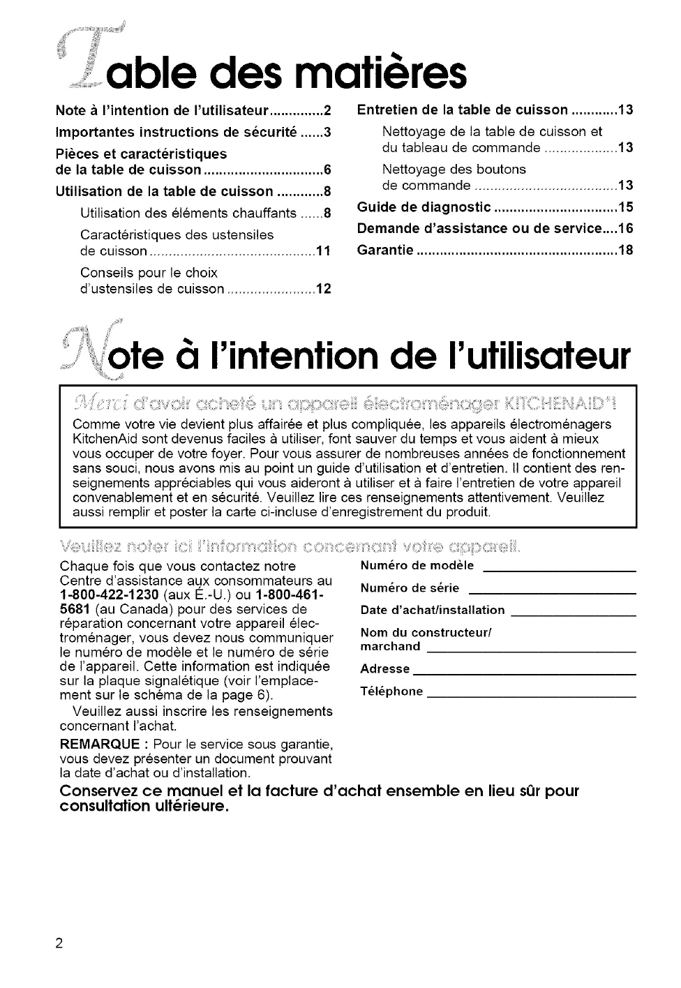 seignements appreciables qui vous aideront a utiliser eta faire I'entretien de votre appareil