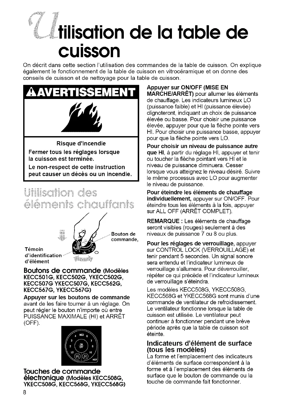 On decrit dans cette section I'utilisation des commandes de la table de cuisson. On explique
