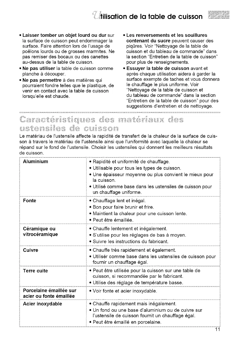 la surface de cuisson peut endommager la