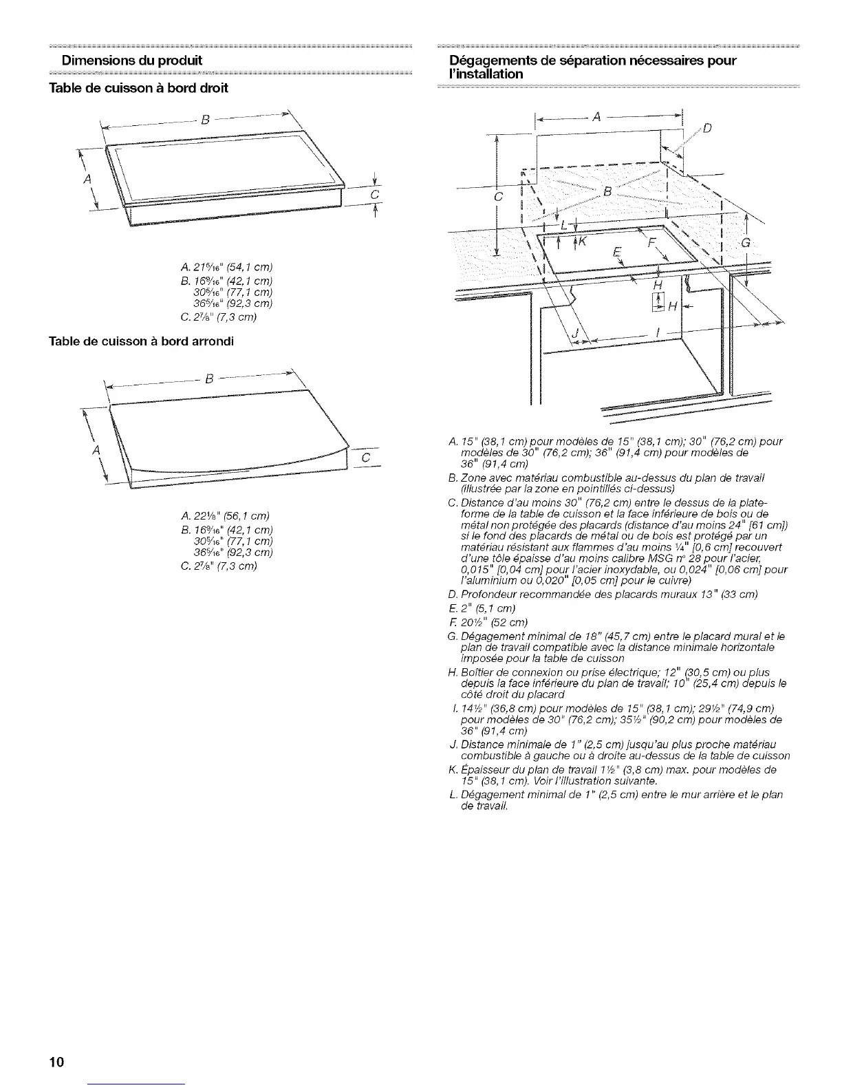 A. 15" (38, ! cm) pour modeles de !5" (38,1 cm); 30" (76,2 cm) pour