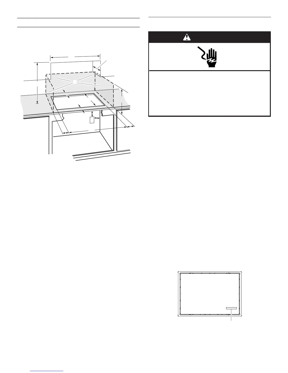 dimensional clearances above the cooktop surface.