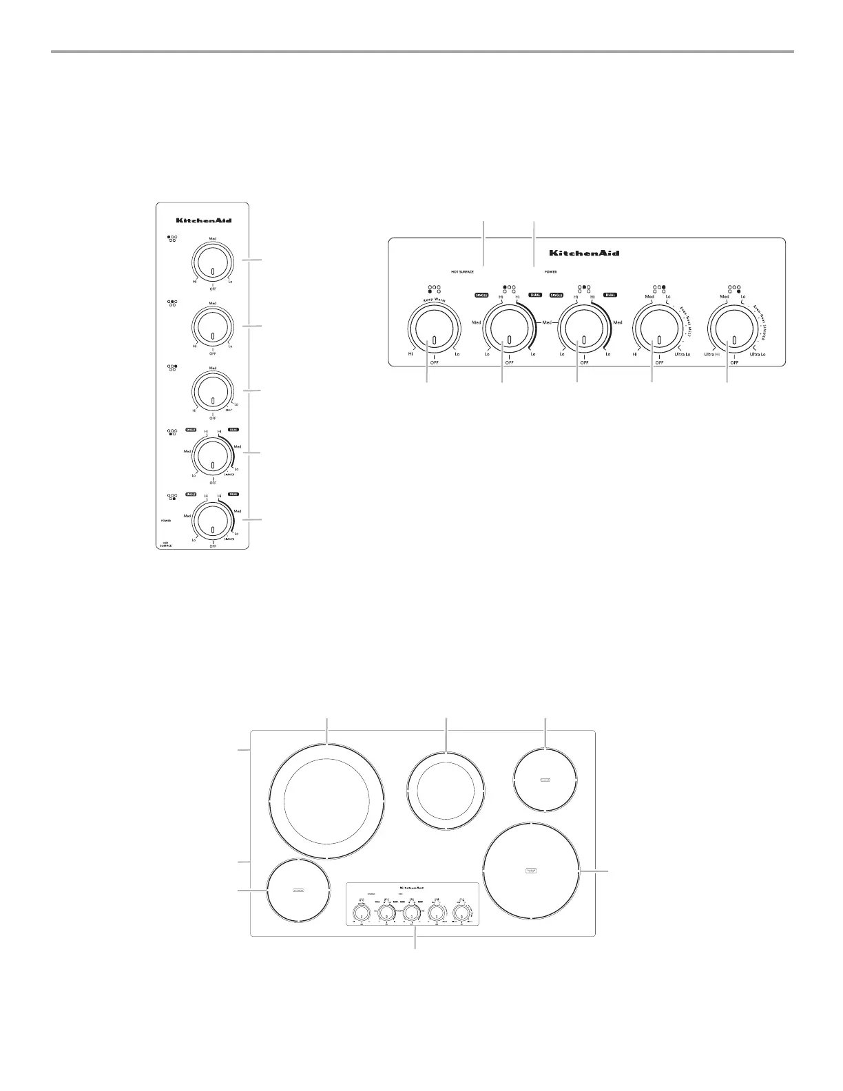 This manual covers different models. The cooktop you have purchased may have some or all of the items listed. The locations and