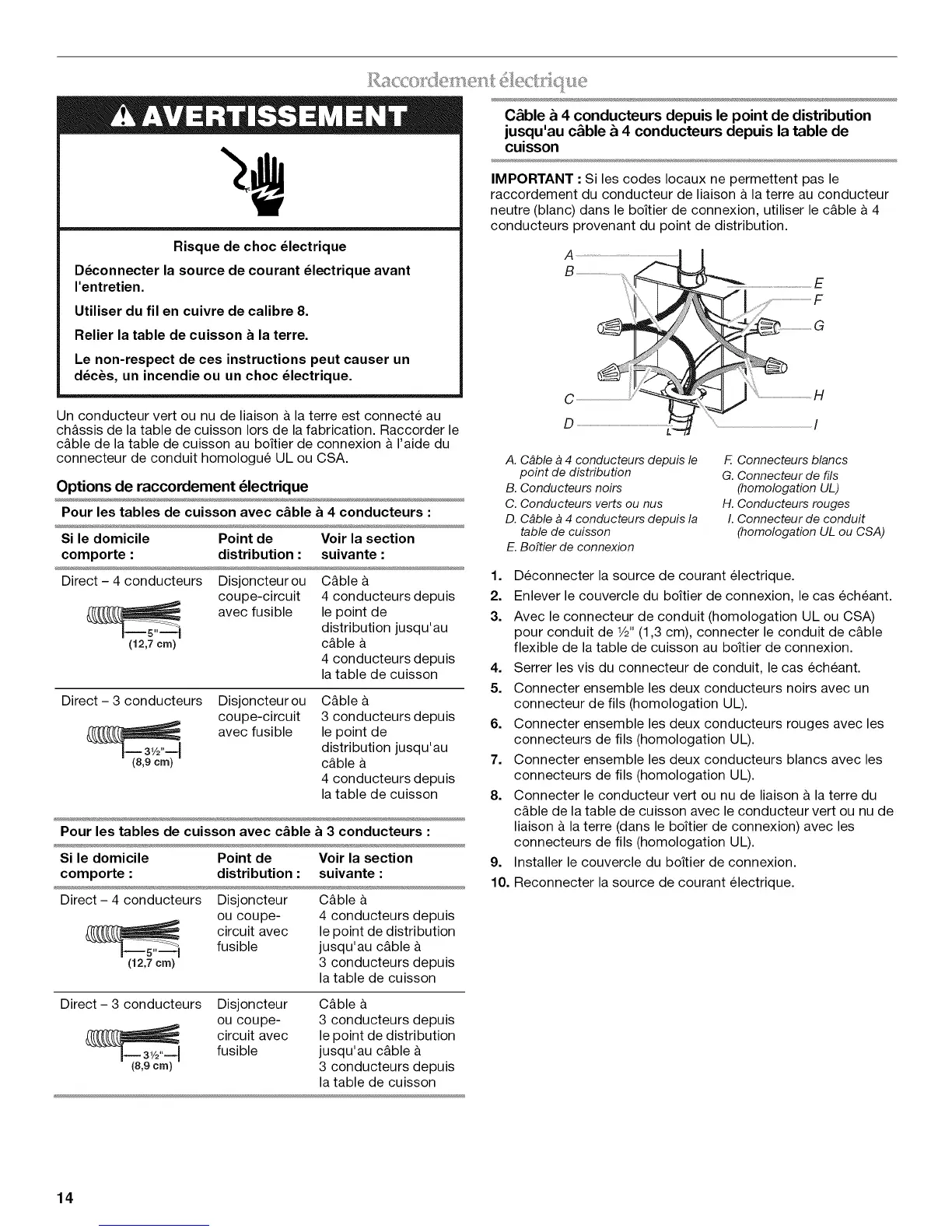 Pour lestables de cuisson avec c&blea 4 conducteurs :