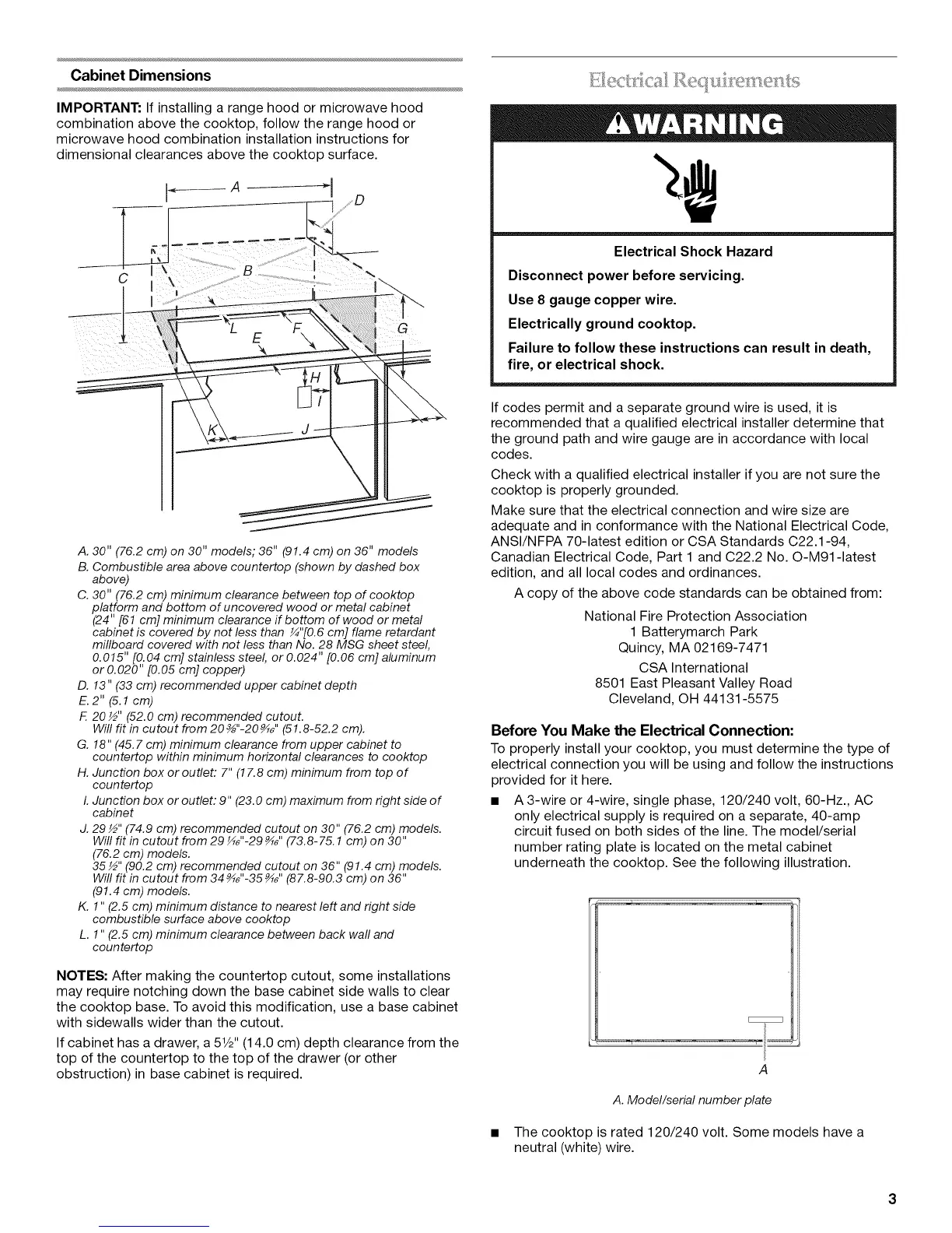 G. 18" (45.7 cm) minimum clearance from upper cabinet to