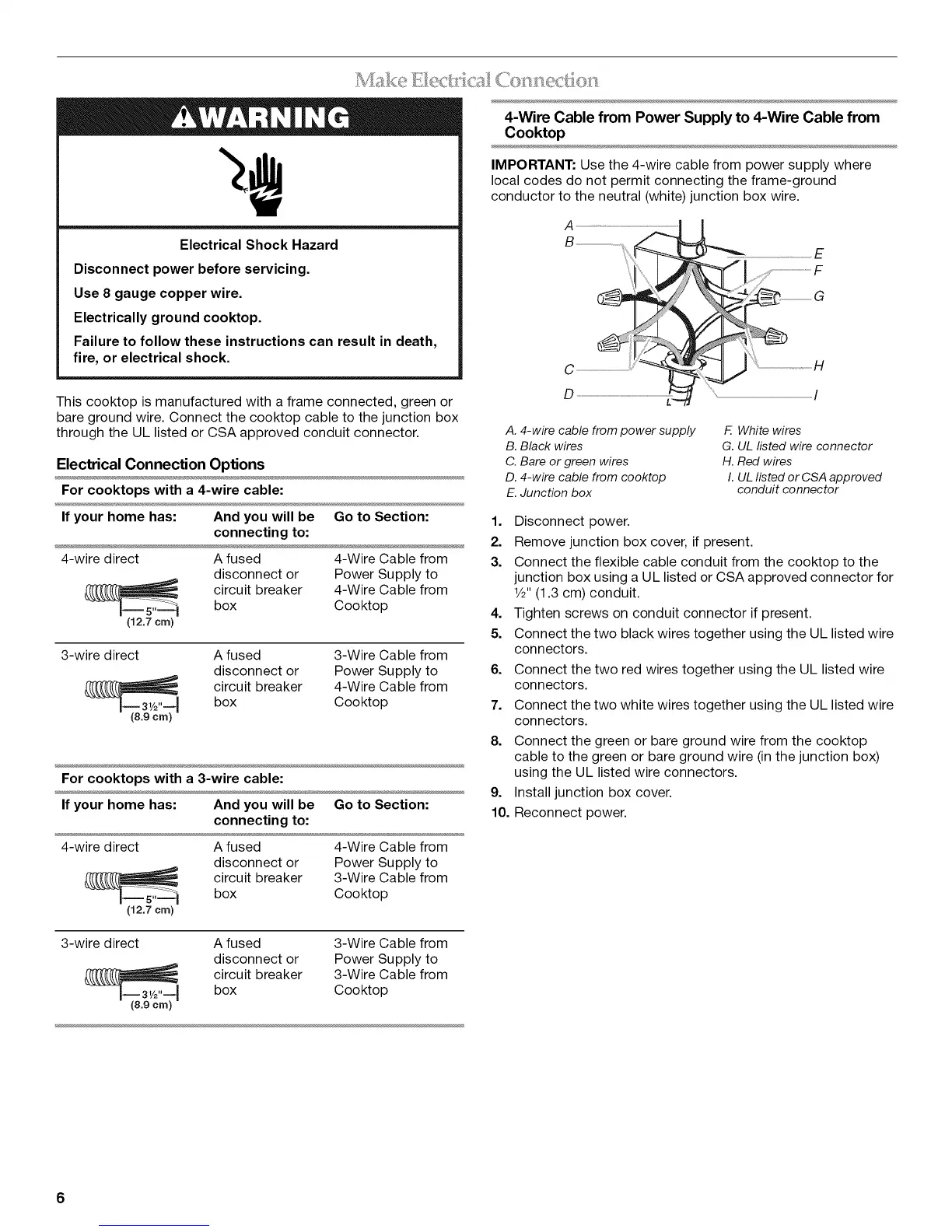 bare ground wire. Connect the cooktop cable to the junction box