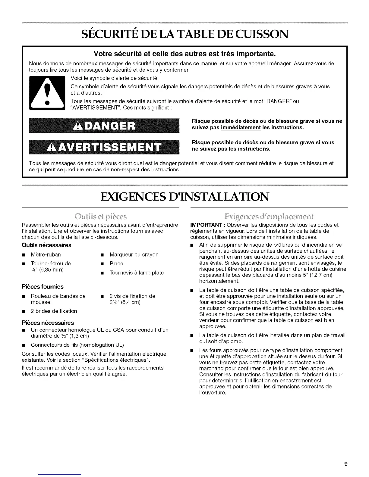 Tousles messages de securit6 suivront le symbole d'alerte de securit6 et le mot "DANGER" ou