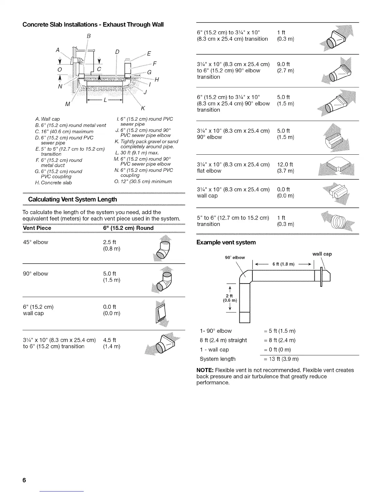 NOTE: Flexible vent is not recommended. Flexible vent creates