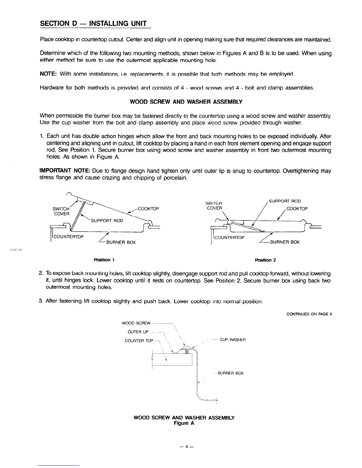 it, until hinges lock. Lower cooktop until it rests on countertop. See Position 2. Secure burner box using back two