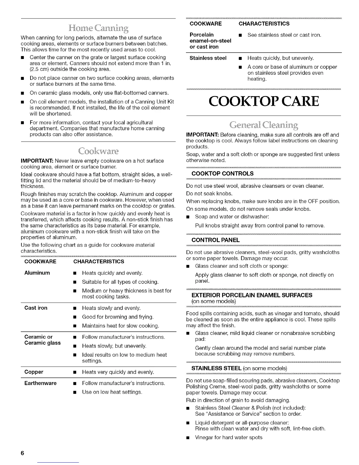 COOKTOP CARE