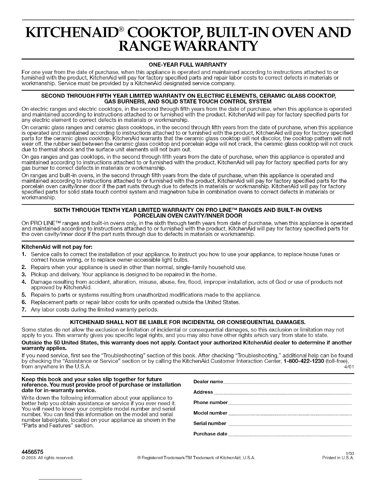 © 2003. All rights reserved. ® Registered Trademark/TM Trademark of KitehenAid, U.S.A. Printed in U.S.A.