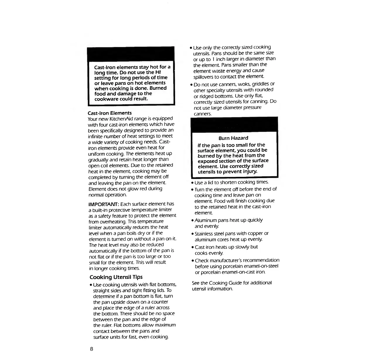 KitchenAid KEDT105V - Cast-Iron Elements; Cooking Utensil Tips