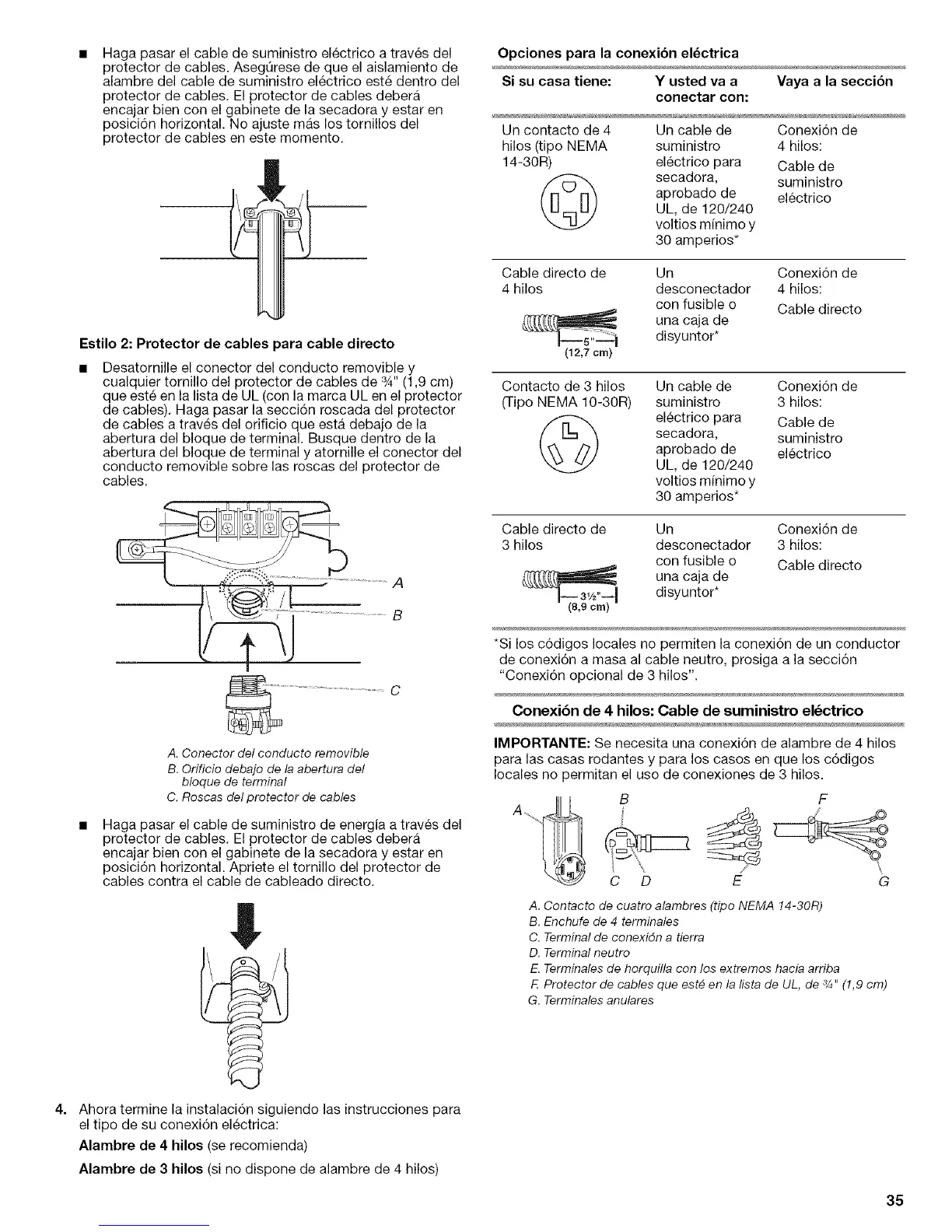 F. Protector de cables que est_ en la lista de UL, de 3/4"(1,9 cm)