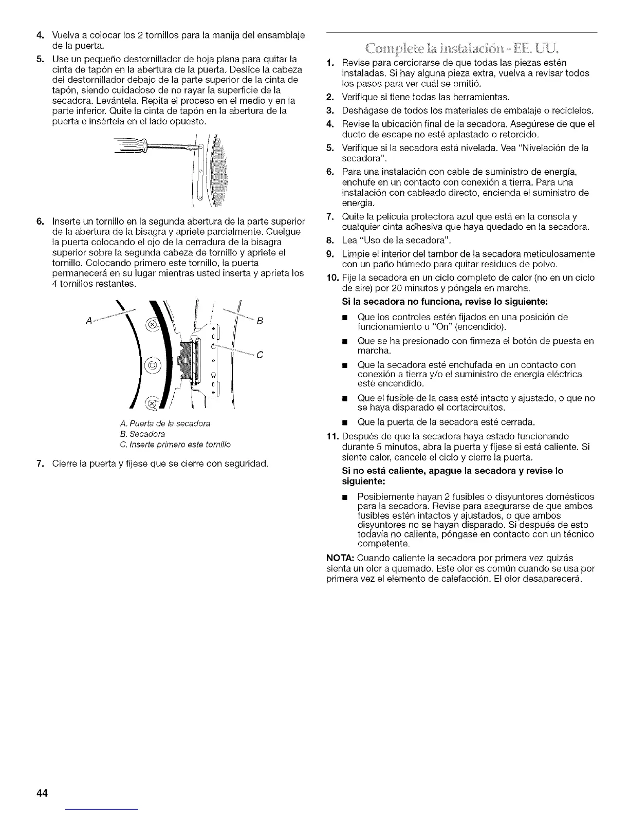 NOTA: Cuando caliente la secadora per primera vez quizas