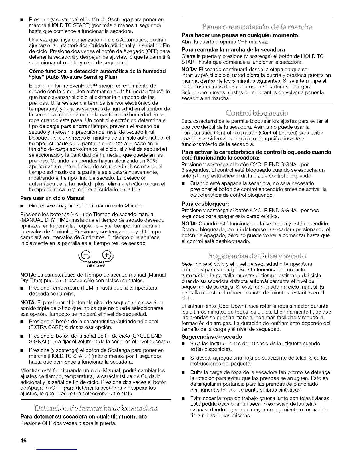 Dry Time) puede set usada s61o con ciclos manuales,