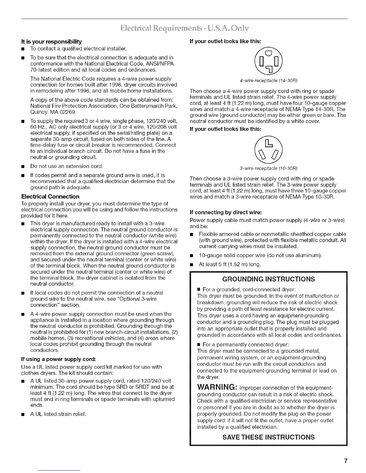 least 4 ft (1.22 m) long. The wires that connect to the dryer