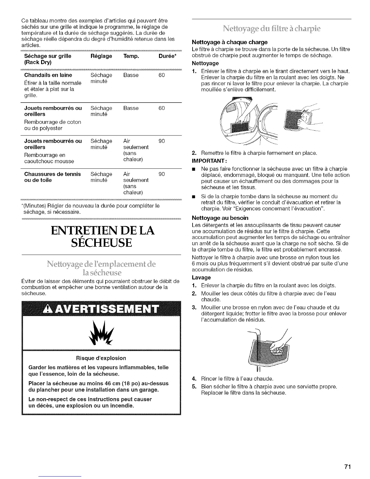 • Ne pas faire fonctionner la secheuse avec un filtre a charpie