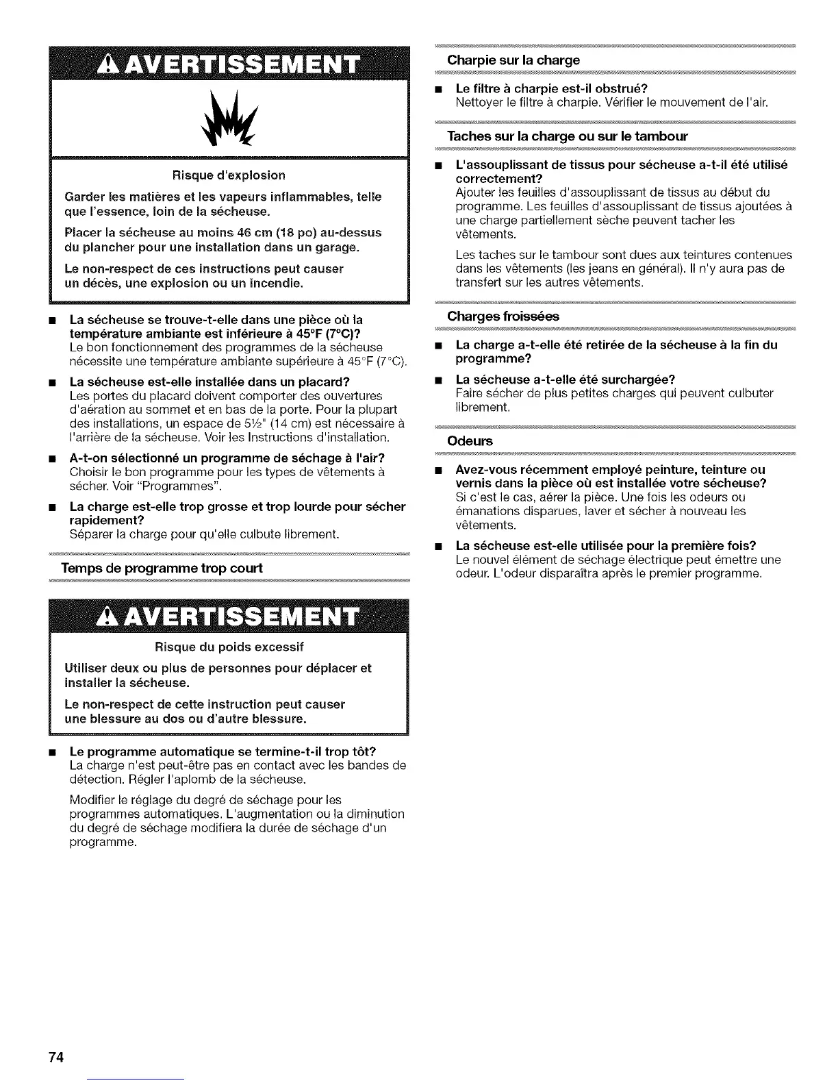 une charge partiellement seche peuvent tacher les