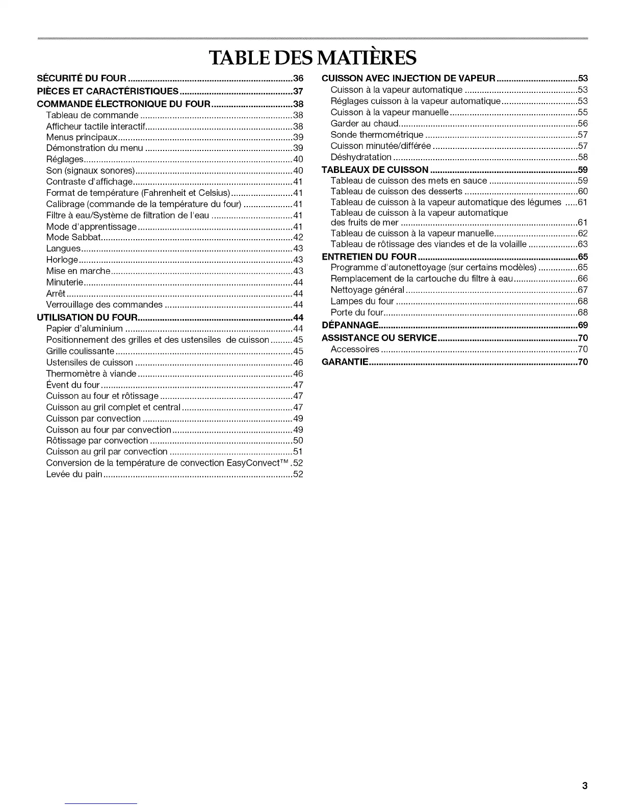 Tableau de cuisson & la vapeur manuelle .................................. 62