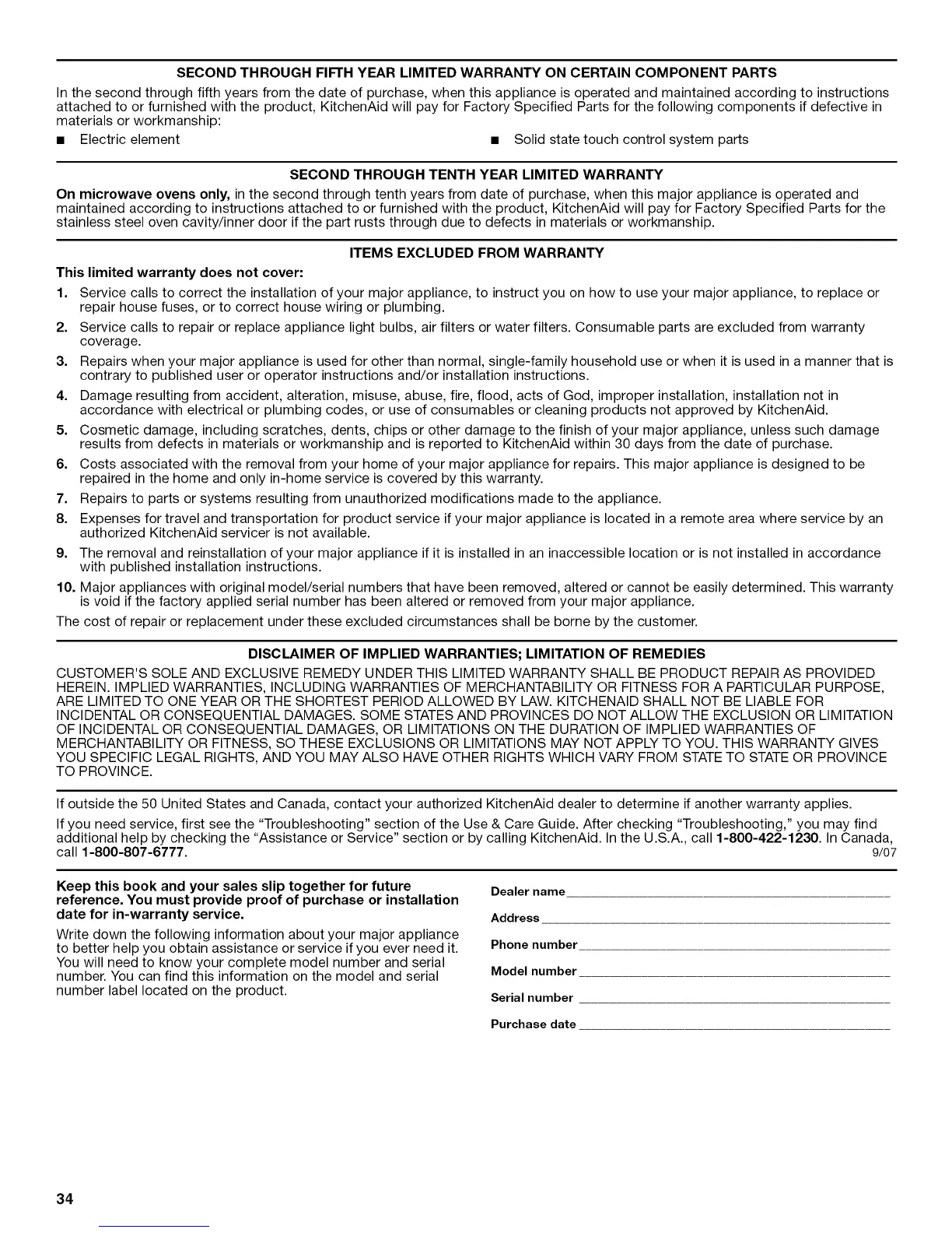 call 1-800-807-6777. 9/07