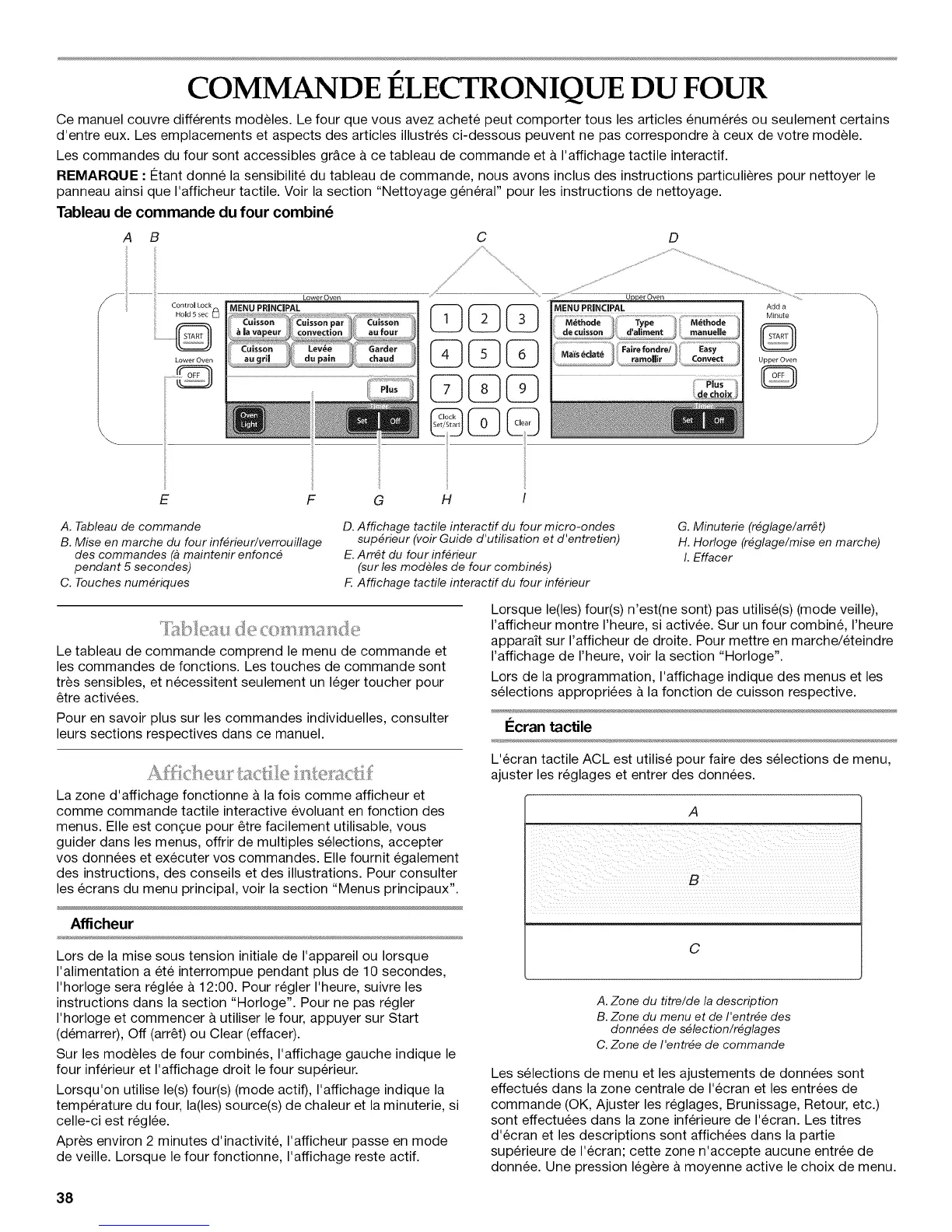 F. Affichage tactile interactif du four inf6rieur