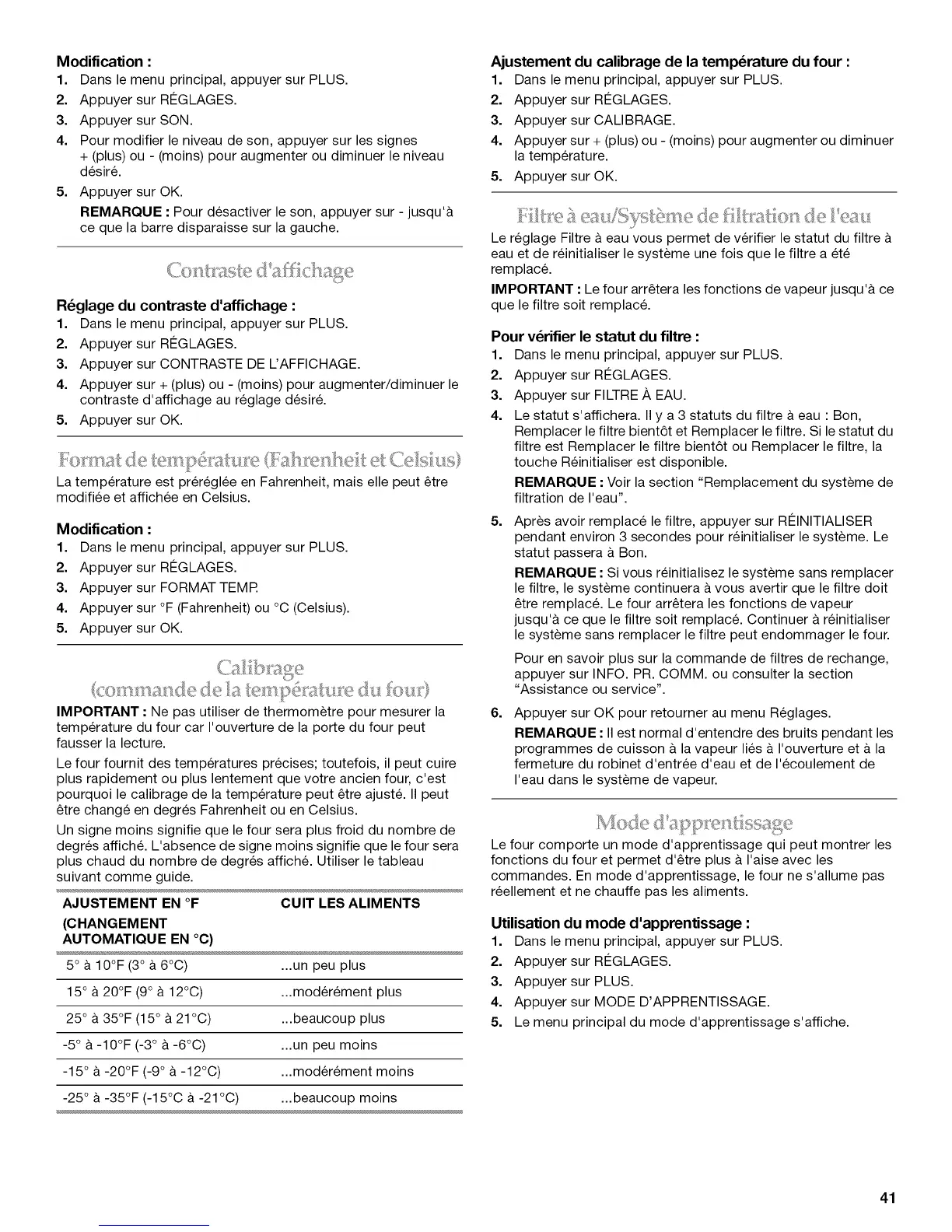 Ajustement du calibrage de latemperature du four :