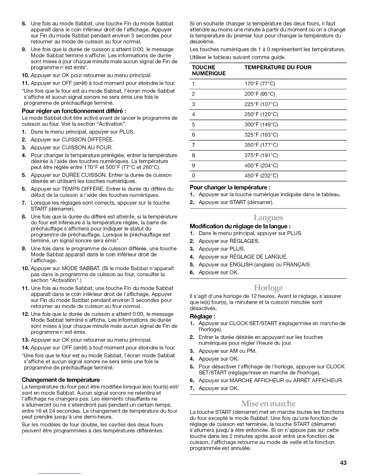 peut etre reglee entre 170°F et 500°F (77°C et 260°C).