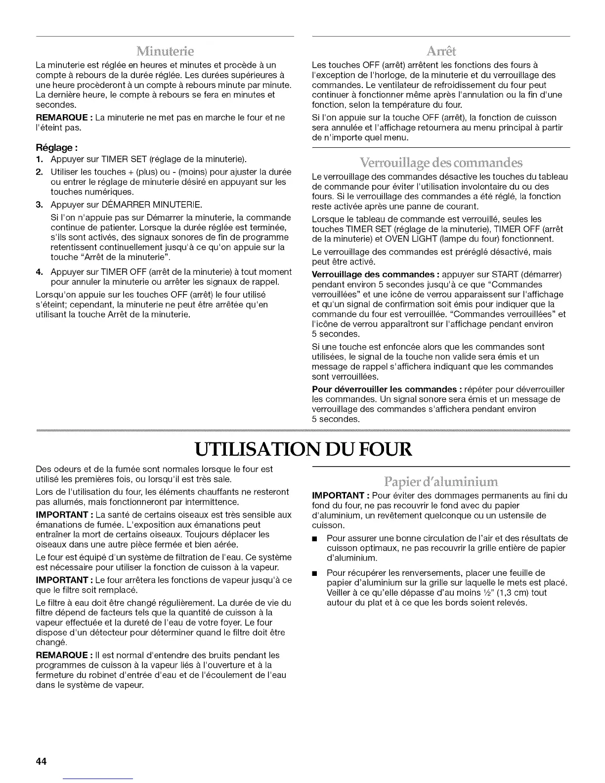 Les touches OFF (arret) arretent les fonctions des fours