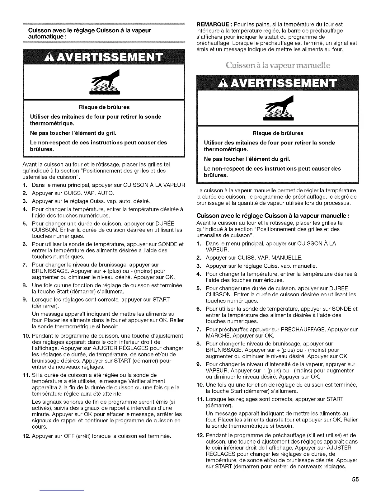 Cuisson avec le r_glage Cuisson & la vapeur manuelle :