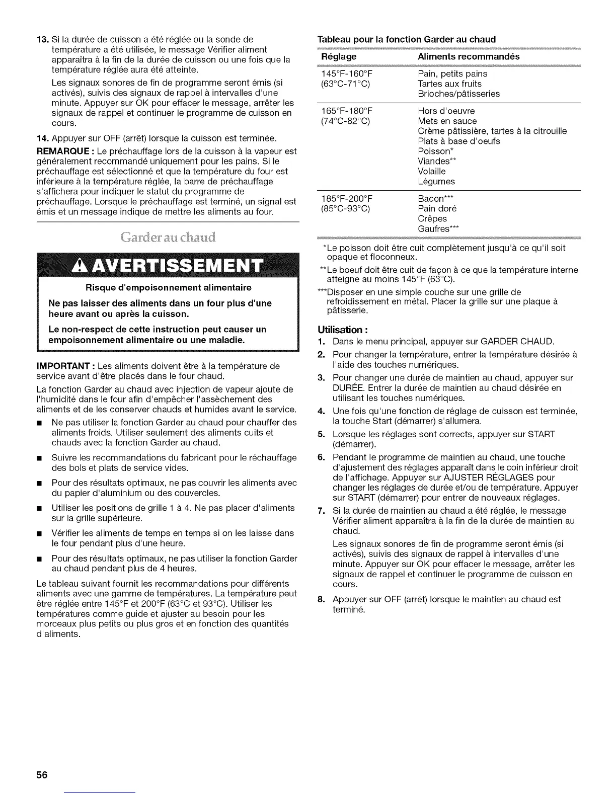 IMPORTANT : Les aliments doivent etre & la temperature de