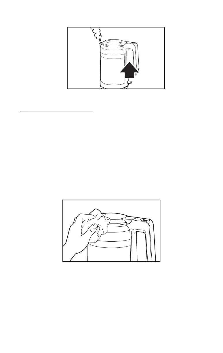 The exterior of the Electric Kettle may be cleaned with a damp cloth. Dry and polish the