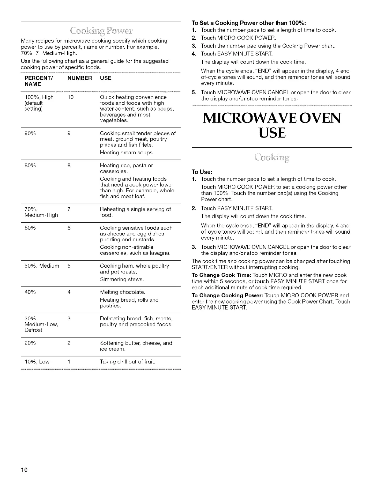 To Change Cooking Power: Touch MICRO COOK POWER and