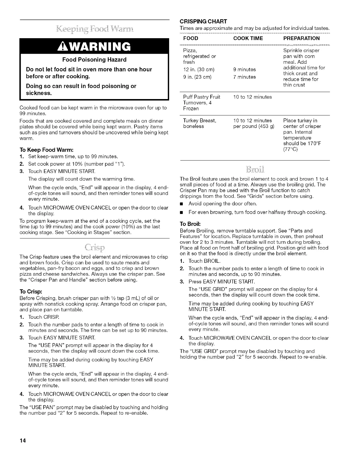 oven for 2 to 3 minutes. Turntable will not turn during broiling.